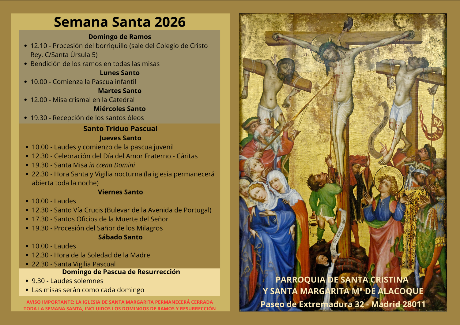 Para la administración de la Santa Unción contactar individualmente con la parroquia.